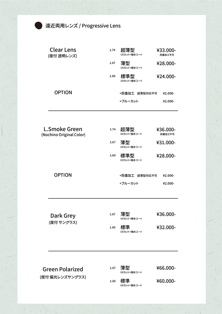 レンズの種類や仕上がり時の厚みなどにより、価格が異なりますのであらかじめご了承ください。