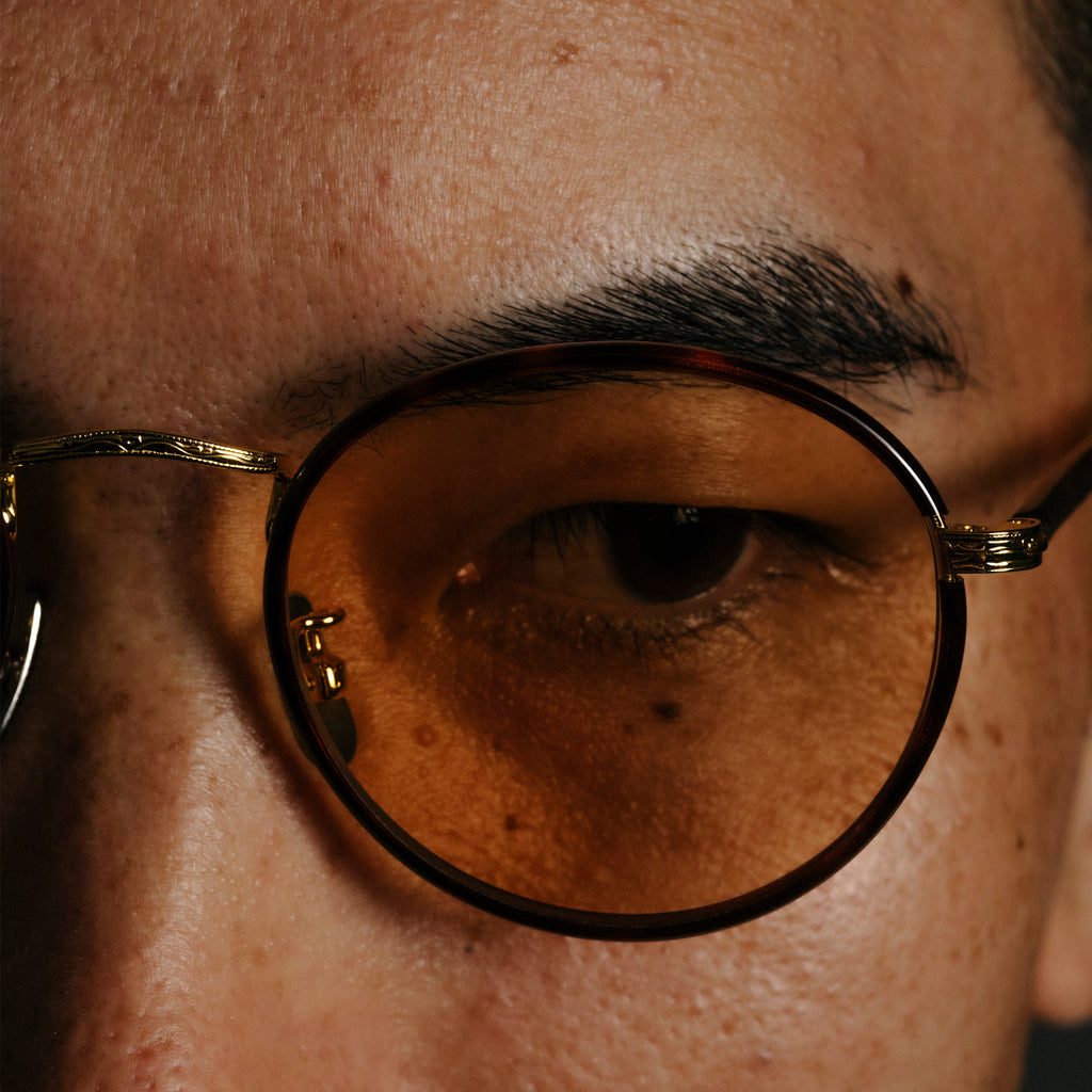鼻部分の一体型パーツでクラシックな雰囲気の印象が強いサドルブリッジ(一山フレーム)を敢えて別々のパーツを選定し製作することでアジア人にフィットするハイブリットなデザインと掛け心地が魅力。熟練の職人の技が盛り込まれた仕様。