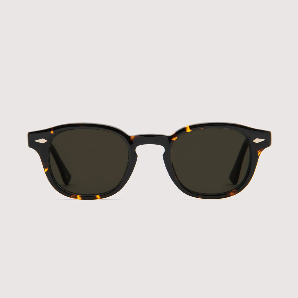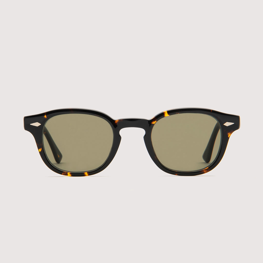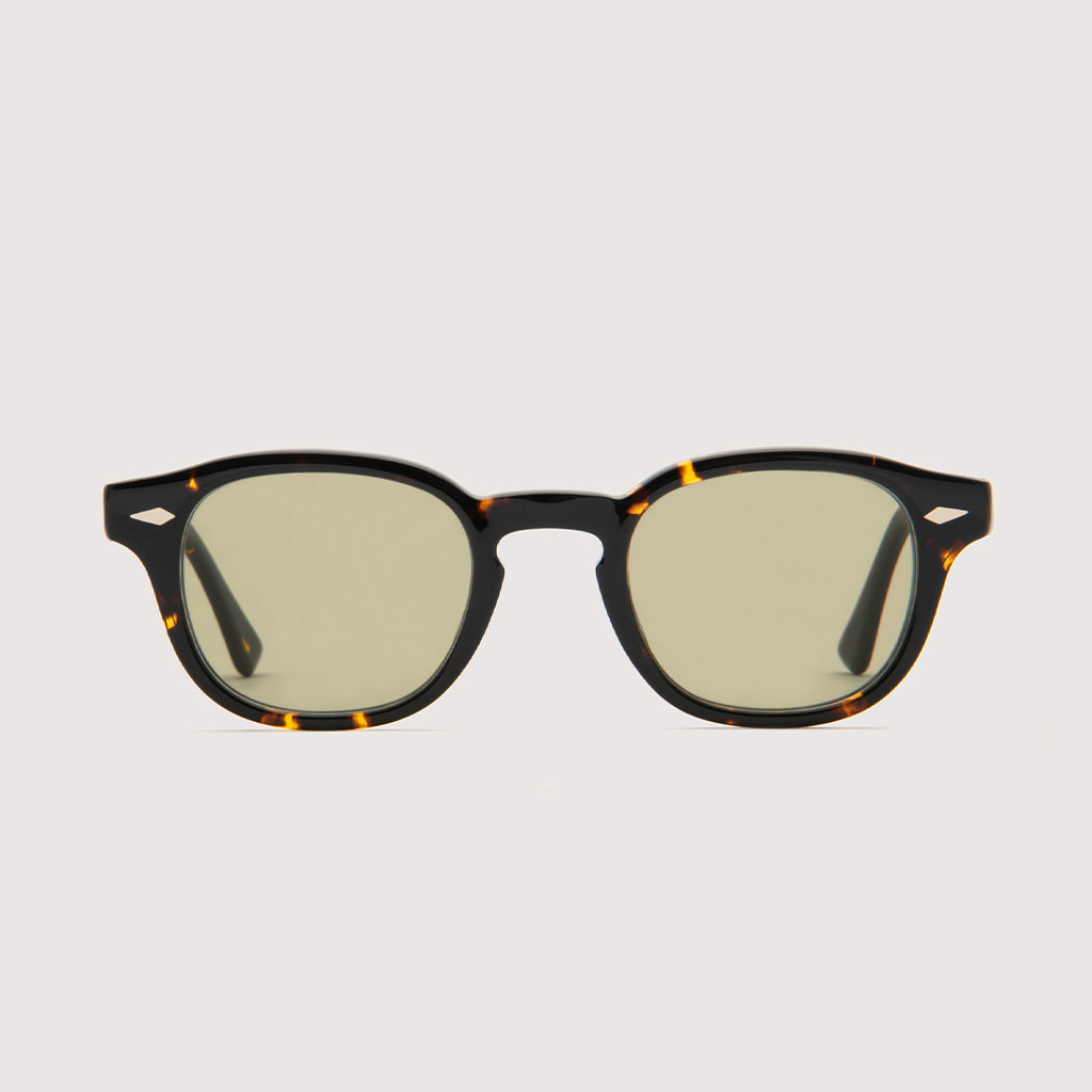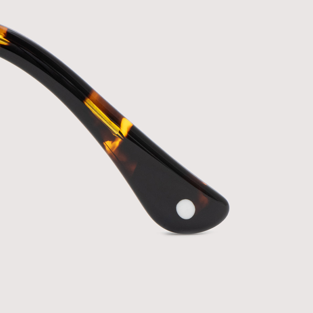 レンズシェイプも5mmのフロント厚に、4mmのテンプル厚という絶妙な強弱を持たせたクラシックスタイル。
