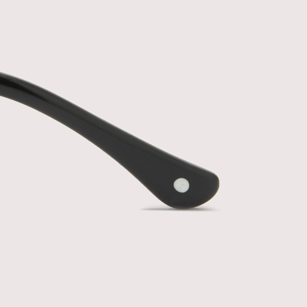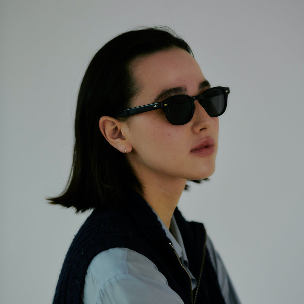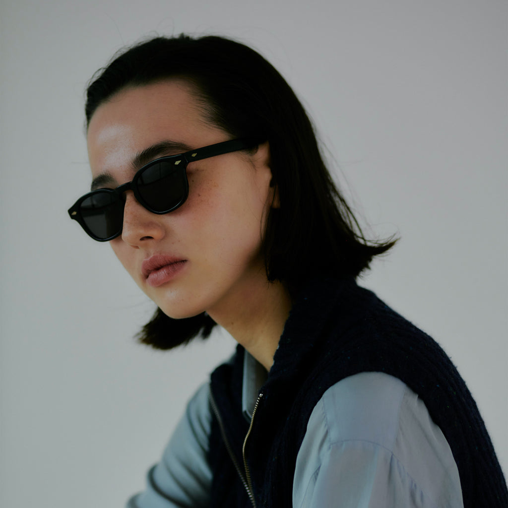 レンズシェイプも5mmのフロント厚に、4mmのテンプル厚という絶妙な強弱を持たせたクラシックスタイル。