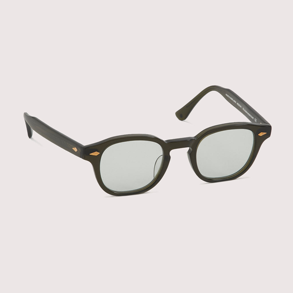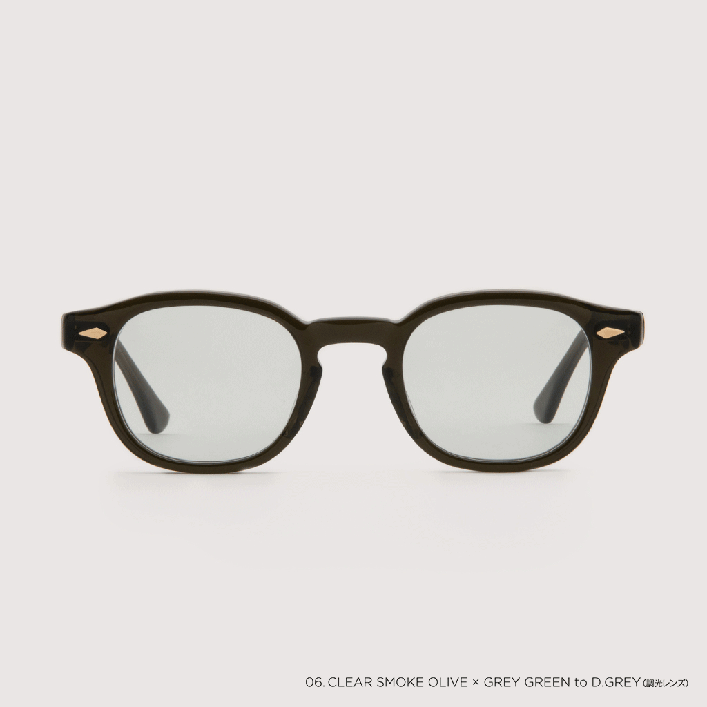 クリアから変色するタイプと、薄くカラーを染色したライトグレーグリーンからグレーへ変色する唯一無二のレンズバージョンが最大の魅力。