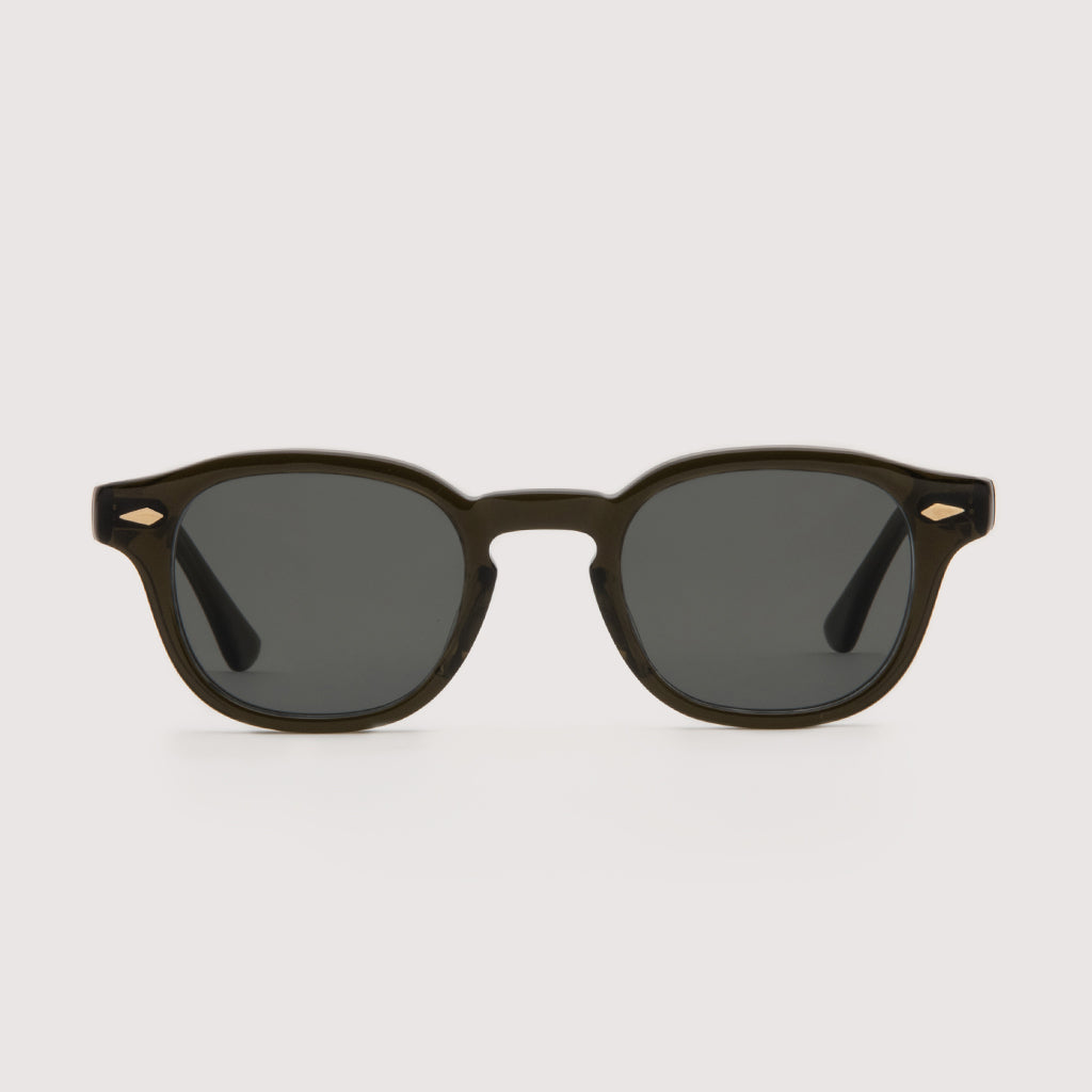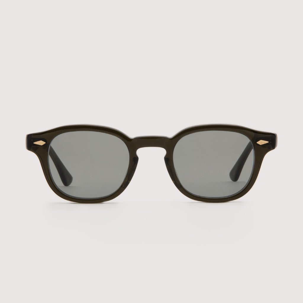 レンズシェイプも5mmのフロント厚に、4mmのテンプル厚という絶妙な強弱を持たせたクラシックスタイル。