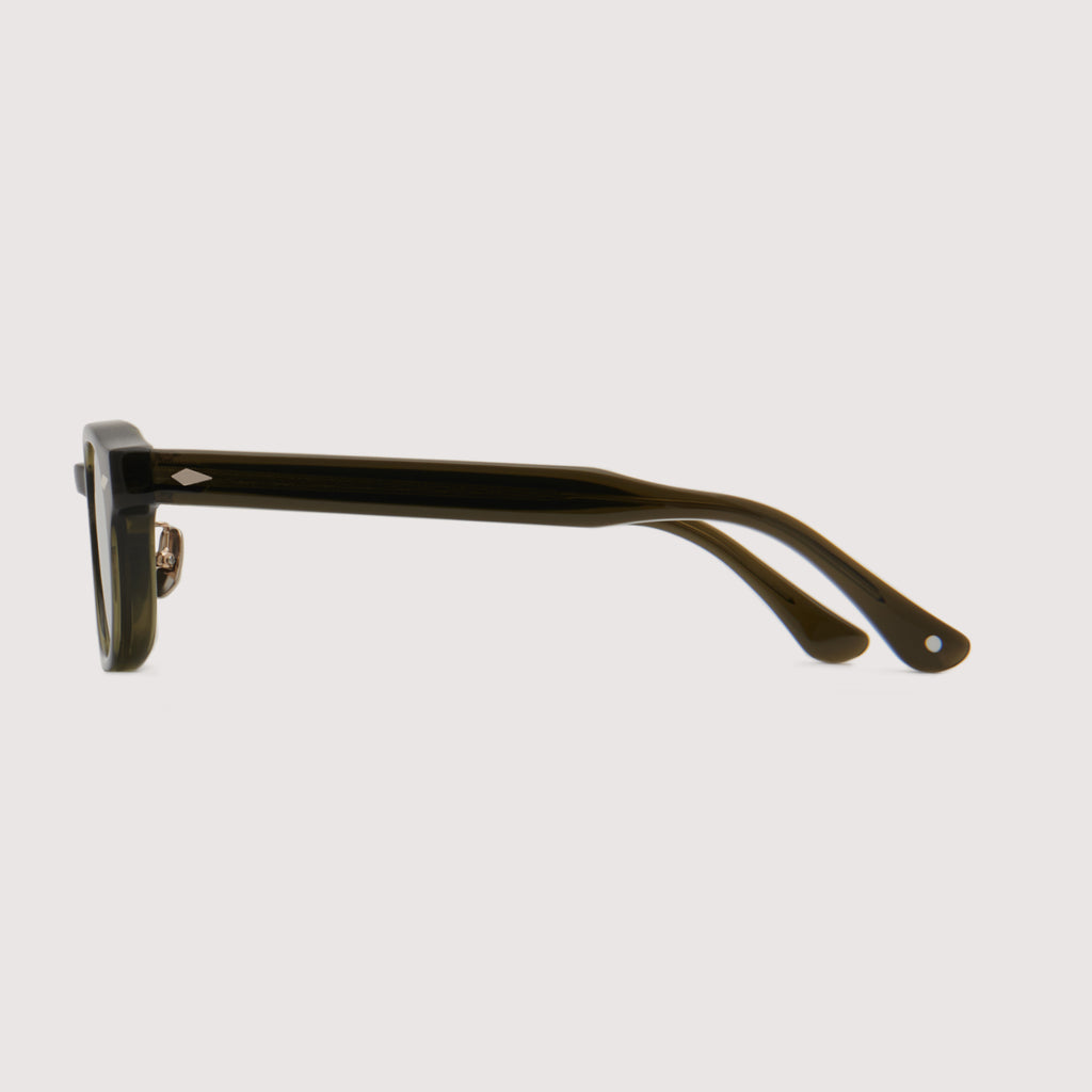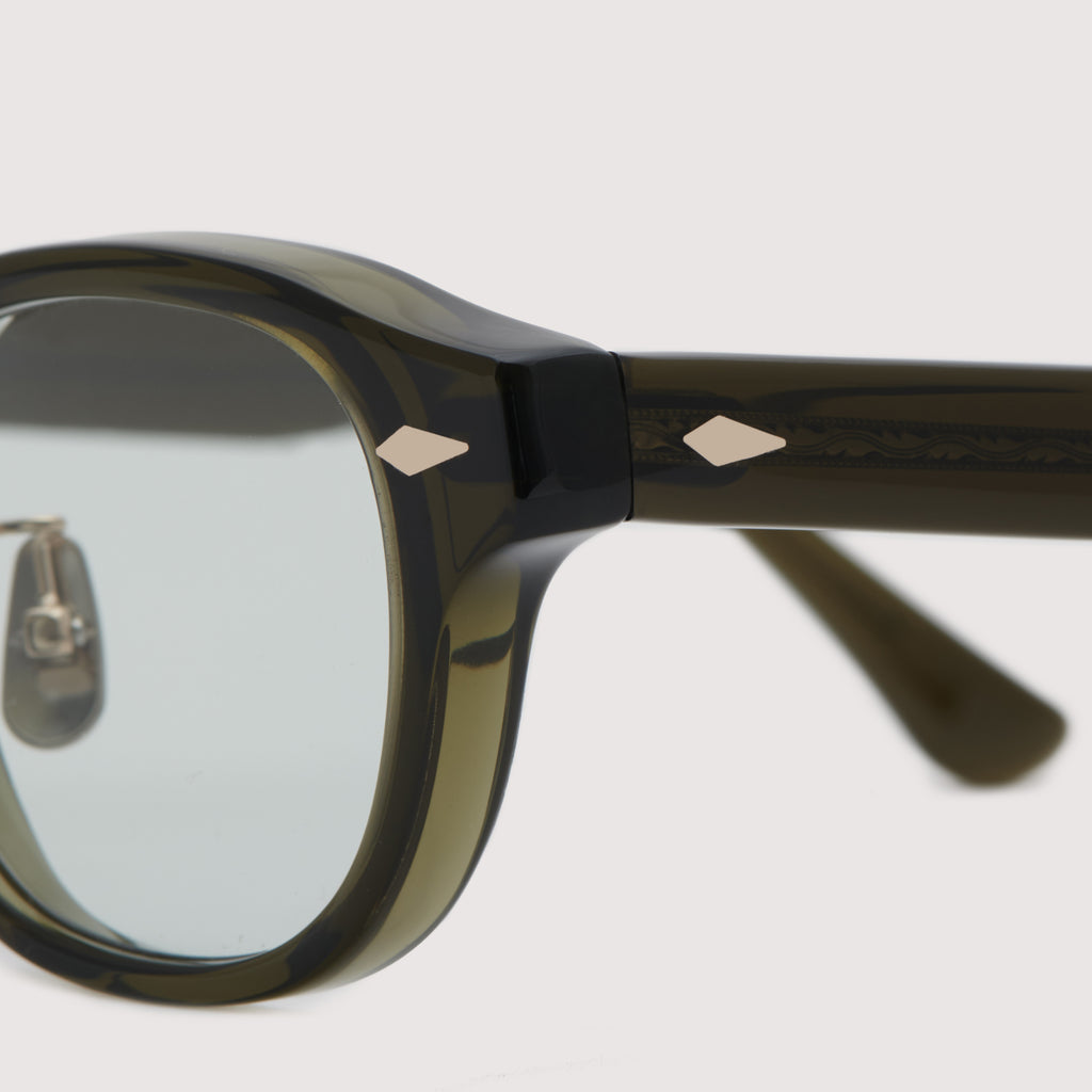 通常にくらべ厚みを持たせる事により斜めからの雑光を抑制し、プラスティックの素材がもつ、グラマラスな透け感や独特の高級感を演出する。圧倒的な存在感を持たせつつ、フロント内面にハツリ加工と呼ばれる一手間の手作業を施し強弱を持たせた。また度付きレンズ装着時の厚みをカバーする役目も担う。