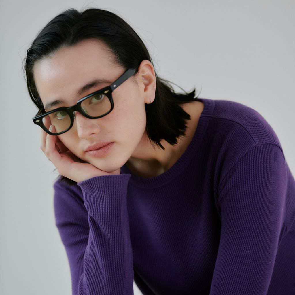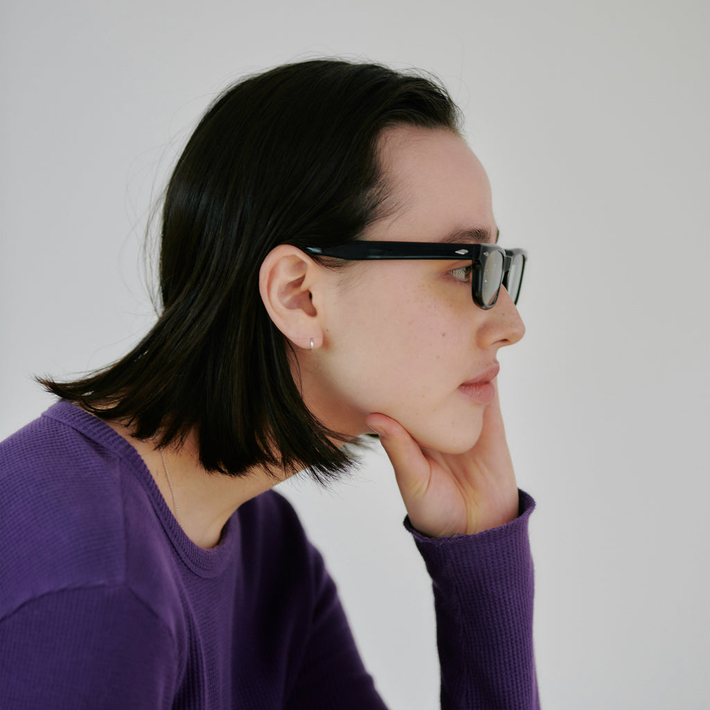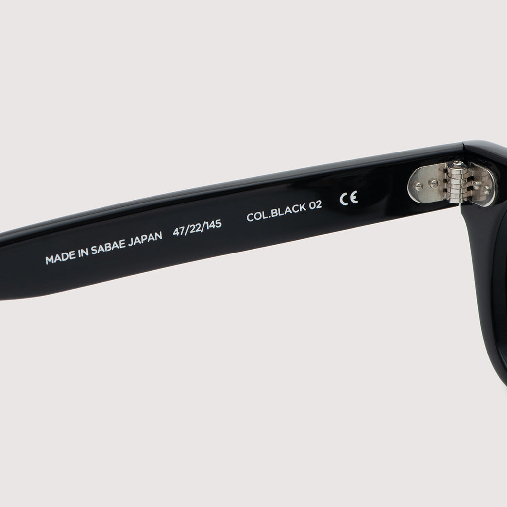 これまでのNOCHINOコレクションの中でも90年代カルチャーのテイストがある上下幅が狭いシェイプながらも普遍的な’’らしさ’’を出す為に6mm厚フロントには程よい「甲丸感/コウマルカン」。ビンテージ界隈でアリとされているフロントとサイドの段差を敢えて行わず、全てを組み立てた後に、さらに磨き合わせる’’面合わせ/ツラアワセ’’という一手間をかける事で繋がりのある一体感と斜めから見た有機的な光沢を具現化。またテンプルと呼ばれる耳に当たる部分の4mm厚のプラステックにはシューティング技法と呼ばれる昔ながらの方法で鯖江の熟練された専属職人が1本1本手作業でメタル芯を内包し、調整や経年変化防止の役目を担っております。