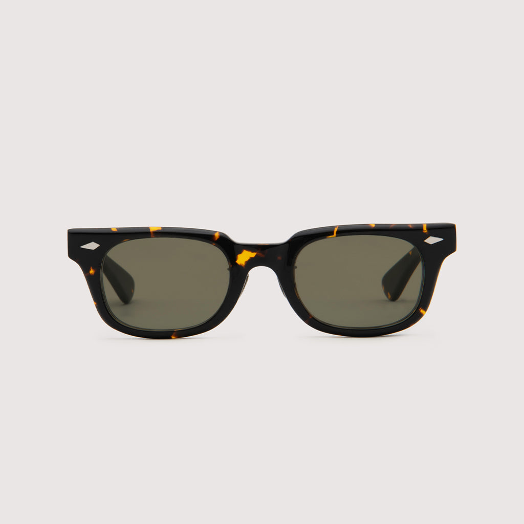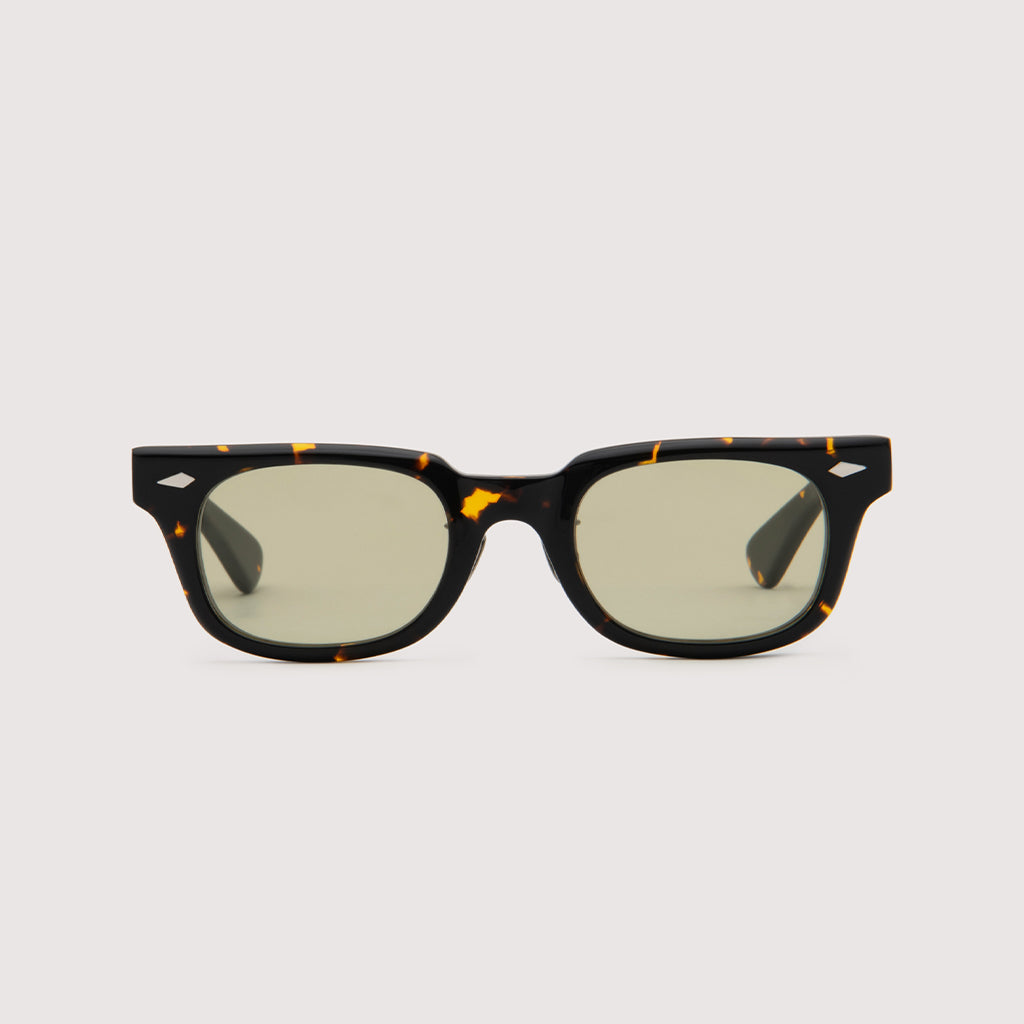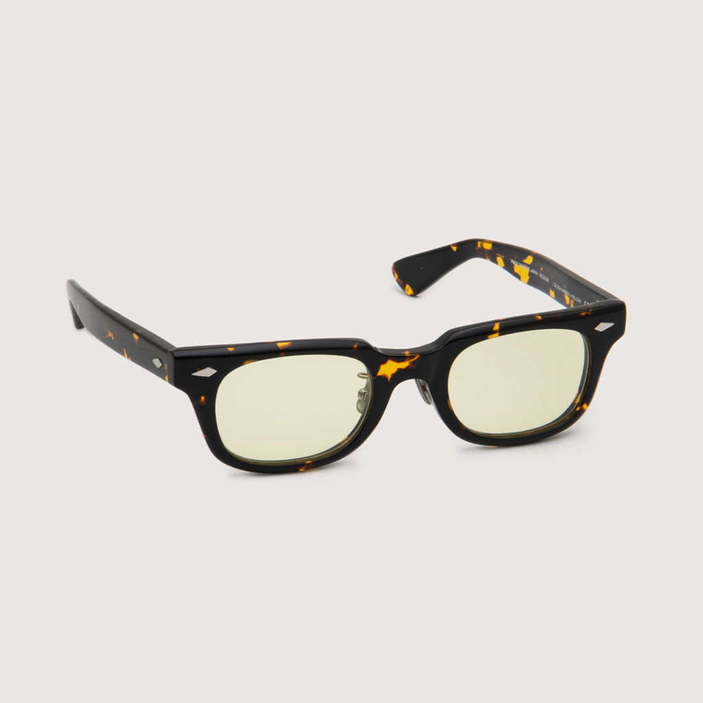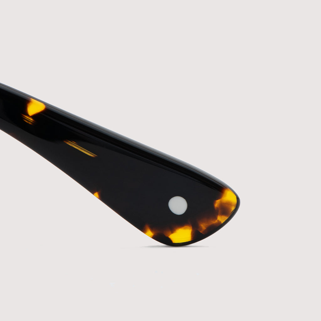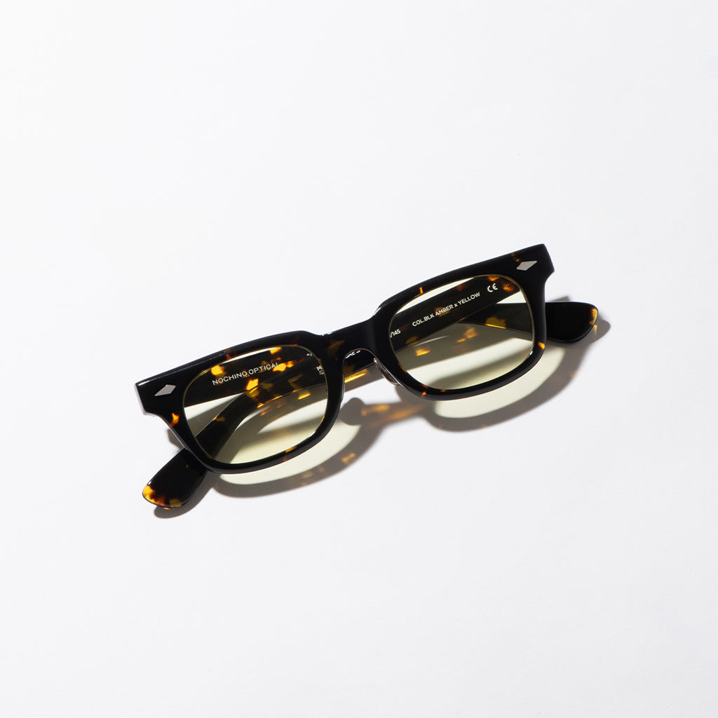 これまでのNOCHINOコレクションの中でも90年代カルチャーのテイストがある上下幅が狭いシェイプながらも普遍的な’’らしさ’’を出す為に6mm厚フロントには程よい「甲丸感/コウマルカン」。ビンテージ界隈でアリとされているフロントとサイドの段差を敢えて行わず、全てを組み立てた後に、さらに磨き合わせる’’面合わせ/ツラアワセ’’という一手間をかける事で繋がりのある一体感と斜めから見た有機的な光沢を具現化。またテンプルと呼ばれる耳に当たる部分の4mm厚のプラステックにはシューティング技法と呼ばれる昔ながらの方法で鯖江の熟練された専属職人が1本1本手作業でメタル芯を内包し、調整や経年変化防止の役目を担っております。
