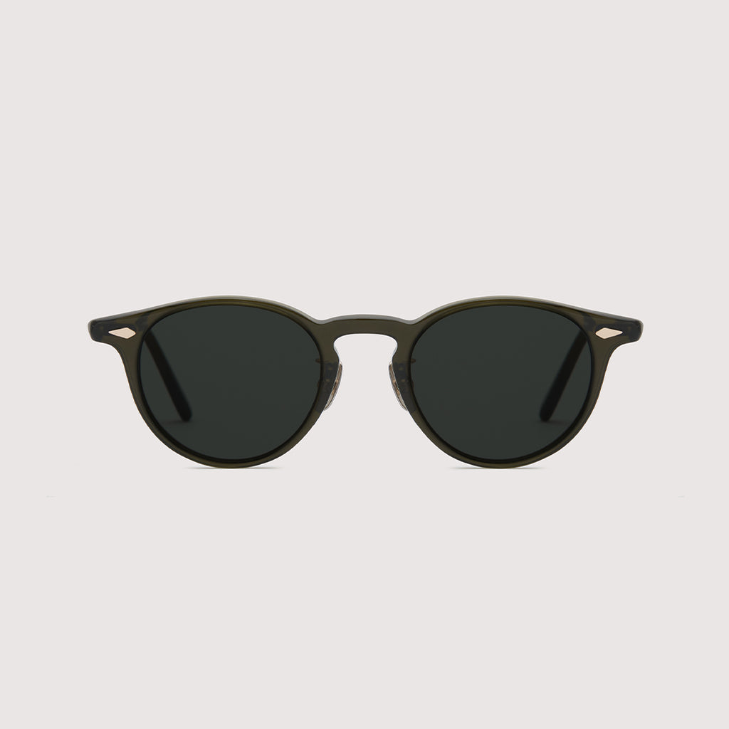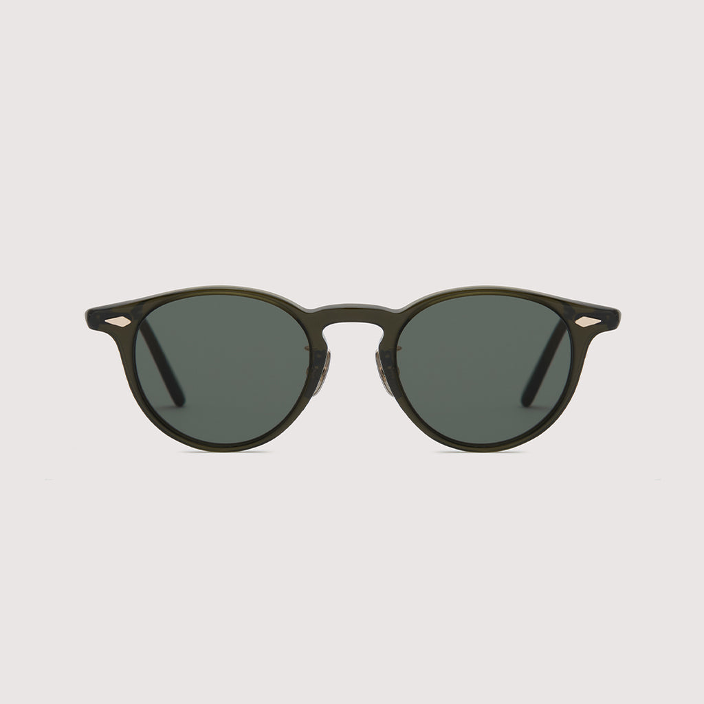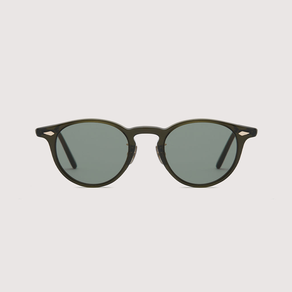 わずかに透ける上品なグリーンフレームは、日本人の肌色にやわらかく馴染み、秋冬の装いを静かに引き立てます。