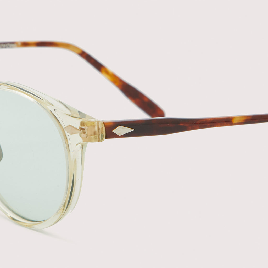クリアから変色するタイプと、薄くカラーを染色したライトグレーグリーンからグレーへ変色する唯一無二のレンズバージョンが最大の魅力。